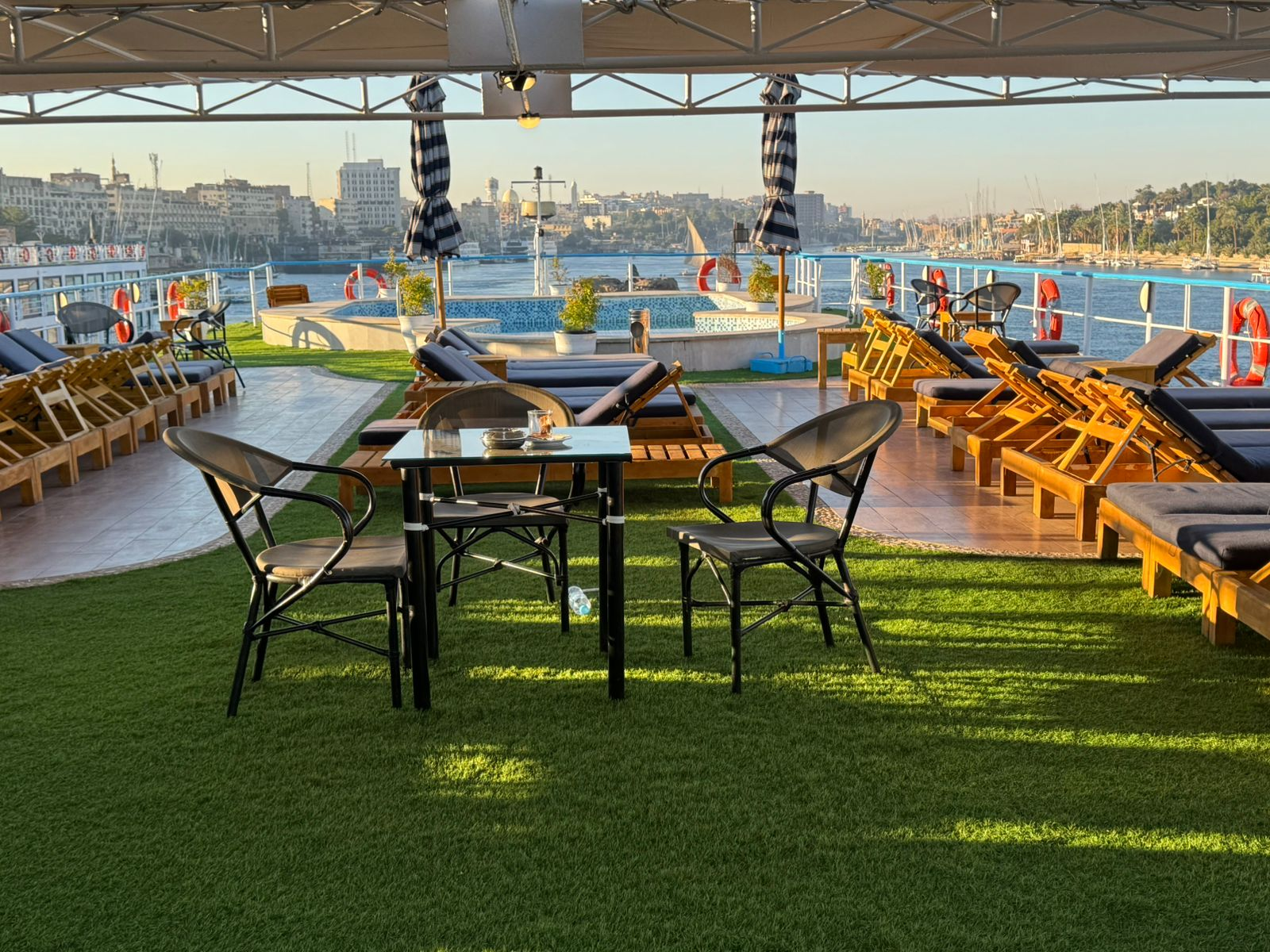 With its unique design and premium services , RA Nile cruise stands out as one of the best Nile cruises in Egypt.Relax and forget all your tiresomes on the Sundeck and enjoy with the Pool.